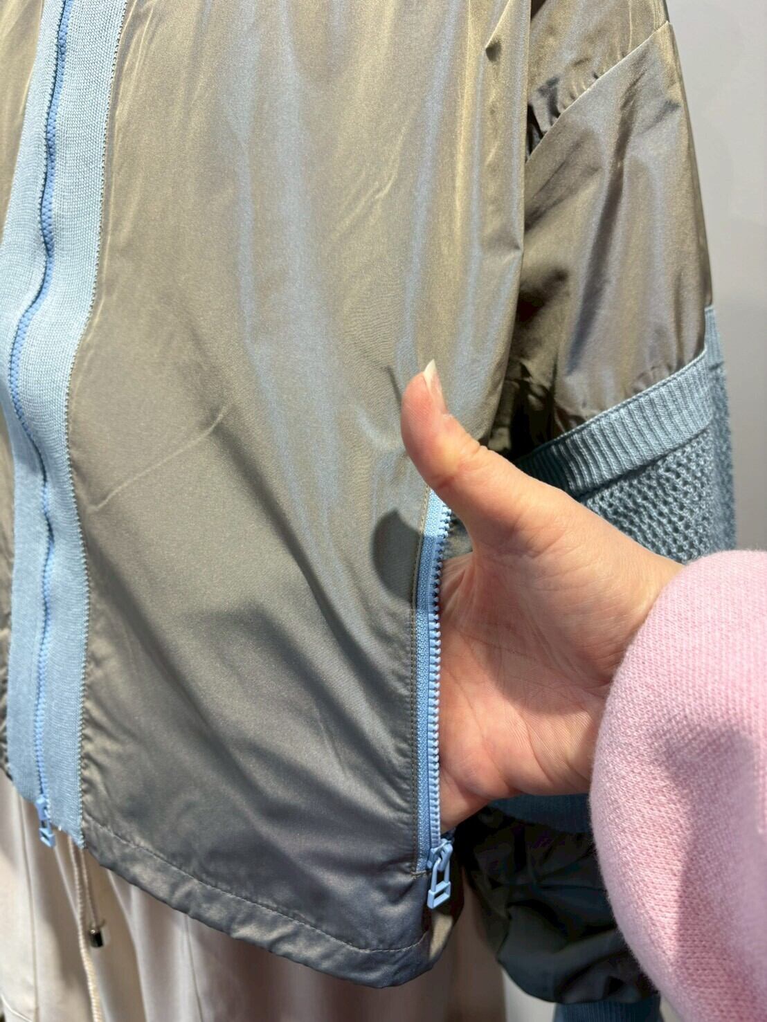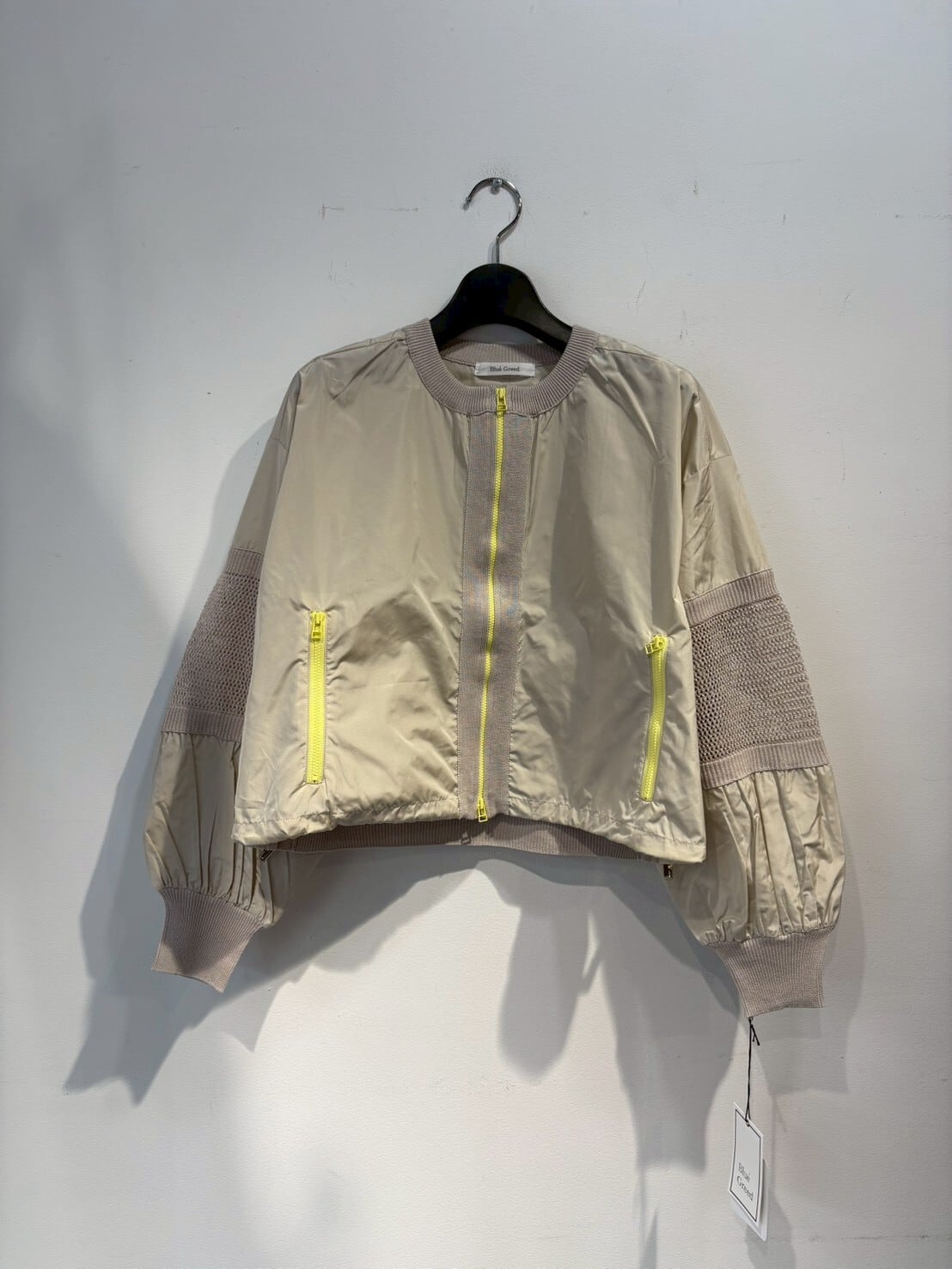 【Blue Greed】の布帛&ニットブルゾンは、洗練されたデザインと快適な着心地が魅力の一着です。コットンを使用した柔らかなニット部分は、軽やかな印象を与えながらもしっかりとしたホールド感も持ち合わせています。布部分はポリエステル100%で、シルエットを美しく保ちつつ、動きやすさも兼ね備えています。このブルゾンはカジュアルなコーディネートから、少しドレッシーなスタイルまで幅広く活躍してくれます。