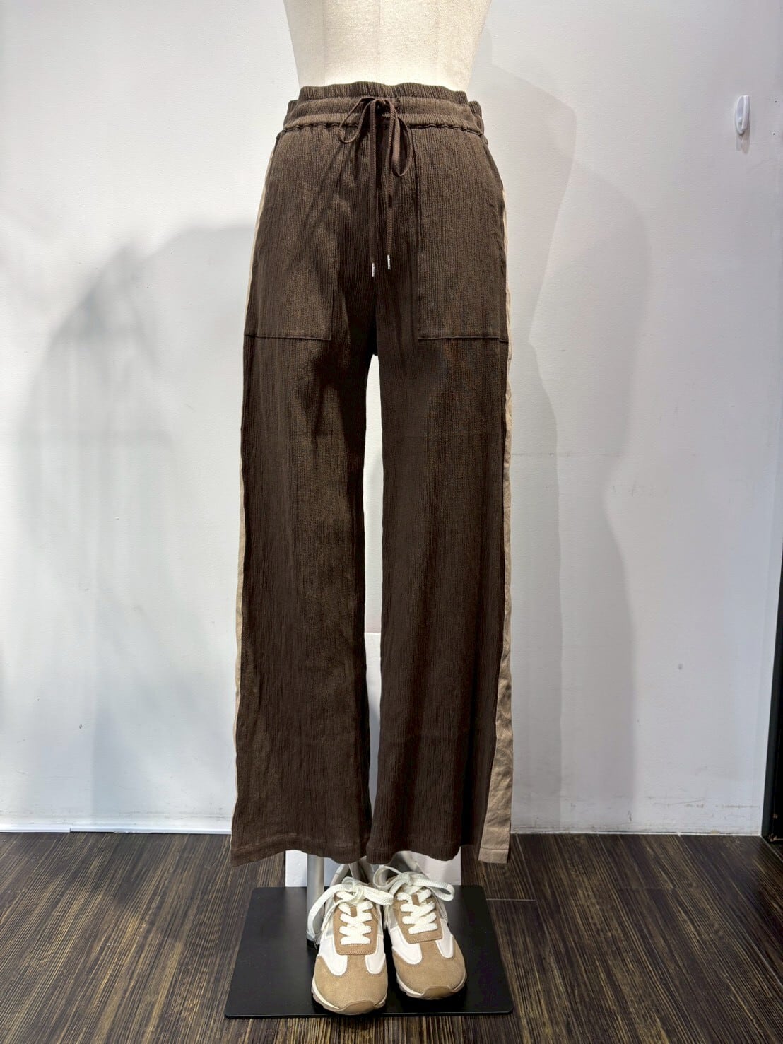 軽やかな楊柳素材が特徴の「JUDDYCORN」楊柳パンツF-3859。独特なシワ感がスタイルにリズムを加え、楽チンなのにお洒落な印象を与えます。ウエストはゴム仕様で、着脱も楽々。カジュアルなお出かけやリラックスしたい日常にぴったりなアイテムです!シンプルなデザインは、さまざまなトップスと組み合わせやすく、異なるスタイルを楽しむことができます。