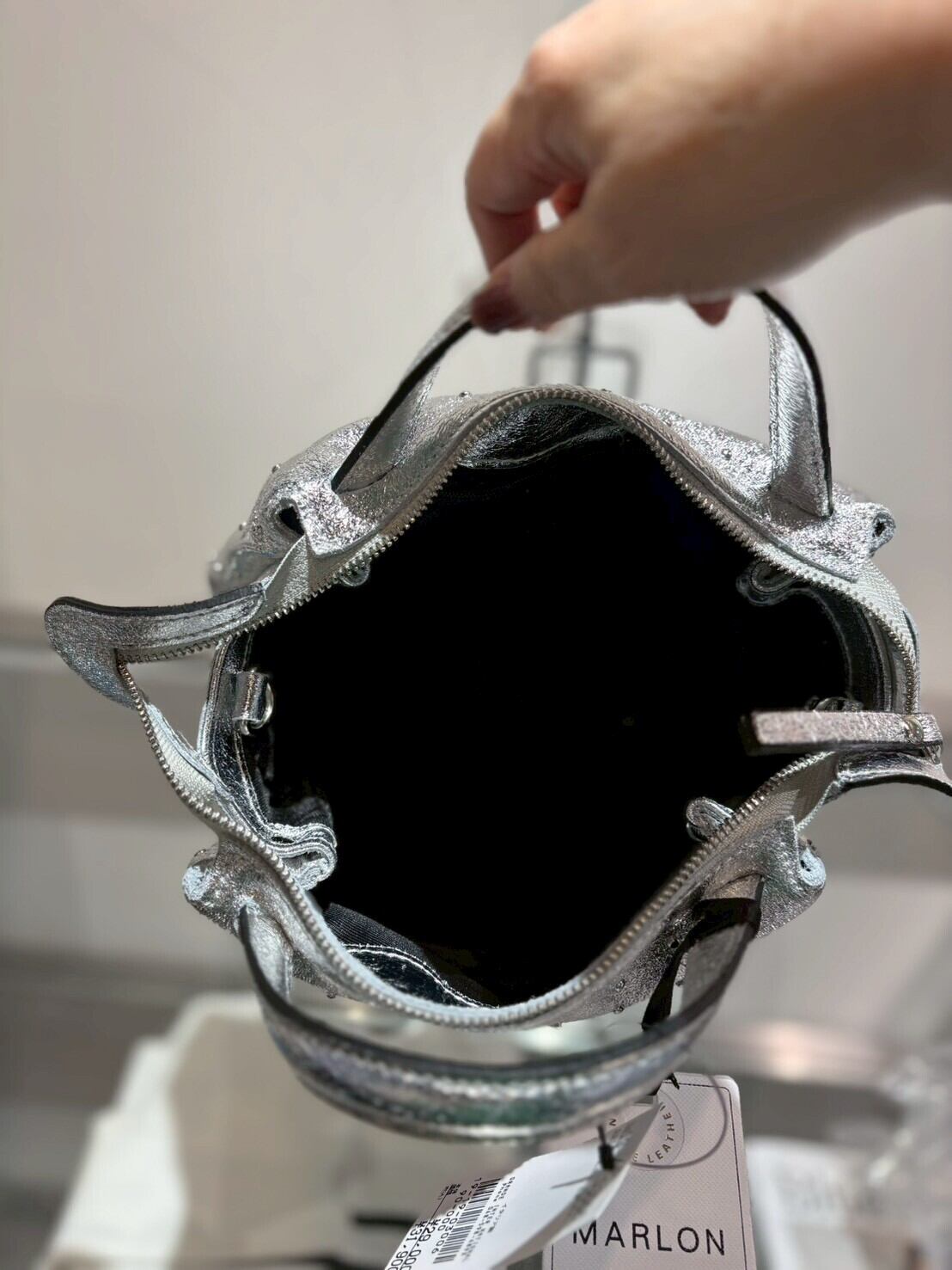 【GRANDE INTERNATIONAL】スタッズ牛革シルバーバッグ|19-19-03006