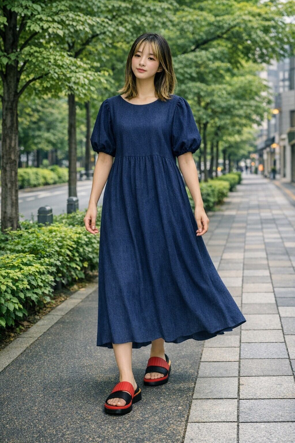 【Cafune】パフスリーブデニムワンピース|625103